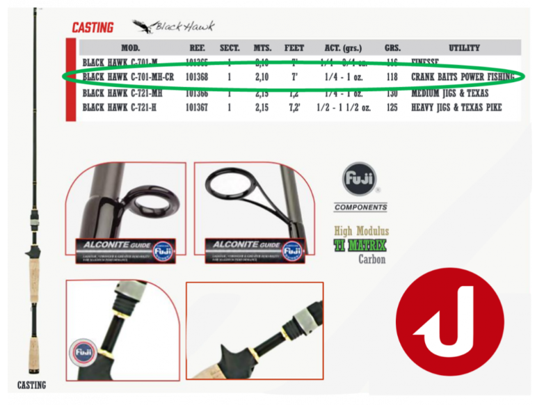 Este modelo con 7' de longitud y con una accion Medium Heavy especial crank es ideal para la pesca con crankbaits.